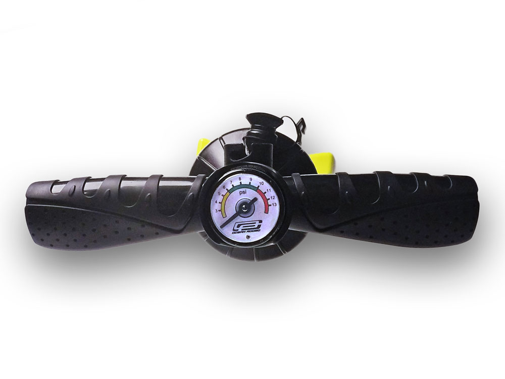 Featuring an extra tall body with high air flow piston, anti sand seals and intake filter, convertible single action valve for double the PSI, a reliable pressure gauge and 3 attachment fittings the Big Pump is ready to work with any kite on the market.