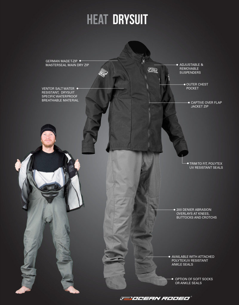 The Heat features an efficient, clean design to deliver incredible performance and reliability now synonymous with Ocean Rodeo’s drysuits.